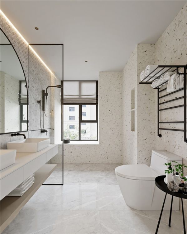 本期分享客餐厅采用莱清大面积铺贴,浅竖条纹里,类似木纹的视觉构造,在极度简约中透显出自然温馨。卧室采用的薇阅,马赛克形式的斑驳纹理,更是颇具现代摩登感,令整个空间在时尚前卫的同时,又散发知性优雅的诱惑力。