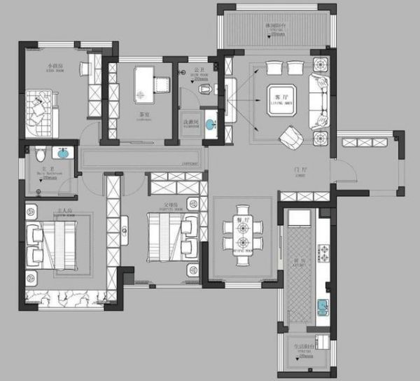 142平美式四居室,温暖清新,喜欢这种高贵典雅的大户型设计
