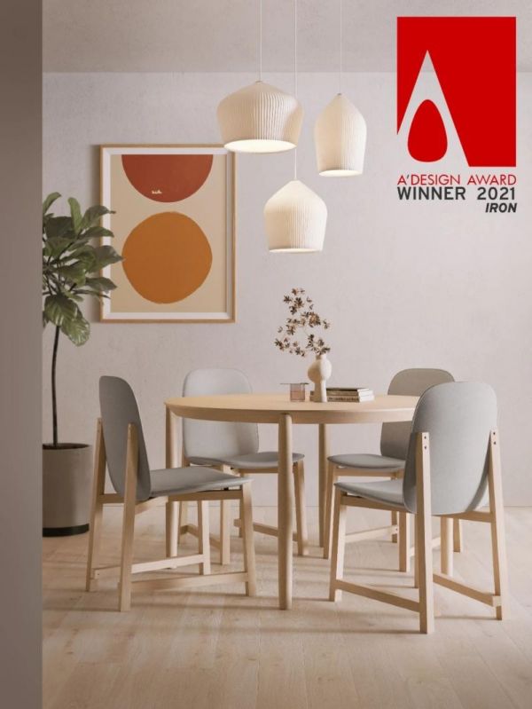 Maha系列基于曲线元素的突出和幻化,抽象出精致、柔和的线条和舒适的椅面,呈现茧状的座椅和靠背,靠背上一面优雅别致的弧形小木背悄然穿过,曲线的定义在这丰富的变化里呈现得恰到好处,带来更多的欢愉、轻松和舒适,宽广的椅面空间,加上柔软的包覆,无论是无束缚的去扶手款式,或是有着满满安全感的带扶手款式,都可让你尽然放松地蜷曲其中,享受属于自己的幸福时光!在众多参评作品中,Maha餐椅脱颖而出,荣获Bronze殊荣!