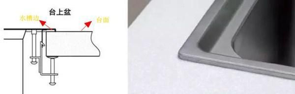 1、台上盆水槽边高于台面,安装较为简单,人工成本较低;