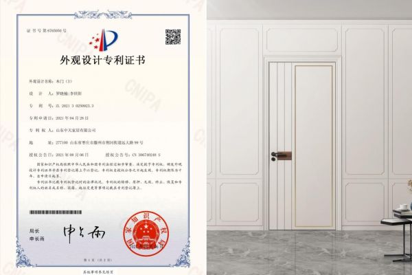 长期以来,山东中天家居有限公司一直坚持自主创新的原则,深耕产品,匠心制造。今年更是联合福祉(上海)建筑设计CEO张传银老师原创设计全新“当代简雅”系列,“中”字元素巧妙融合中天匠心精神和中国传统木作之精美,细腻雅致、超凡脱尘。该系列产品更是一举获得了七项国家知识产权局授予的【外观设计专利证书】。