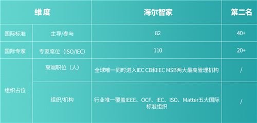 在标准领域,有ISO、IEC、OCF、IEEE、Matter五大国际标准组织,企业能在其中一个组织中占有一席之地都很难,海尔智家是行业唯一5大国际标准组织全覆盖的企业。他是全球唯一同时进入IEC CB和IEC MSB两大最高管理机构的企业;同时在OCF、IEEE、Matter等标准组织担任重要职位。