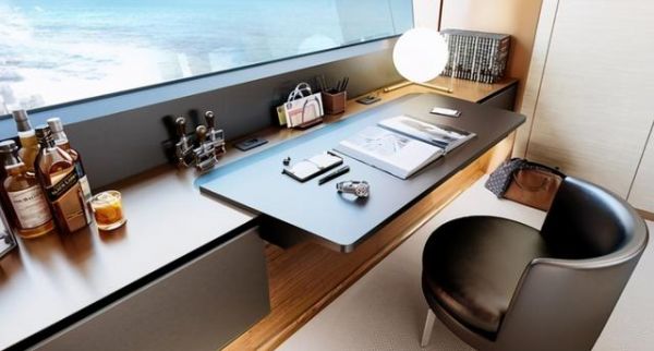 前两种的设计,更偏向于用餐的使用。而对于办公空间,还得是这种结合柜体进行设计的。像上图的这种,连接着电视柜进行设计,整体性强,办公读书,舒适性同样不会太差。