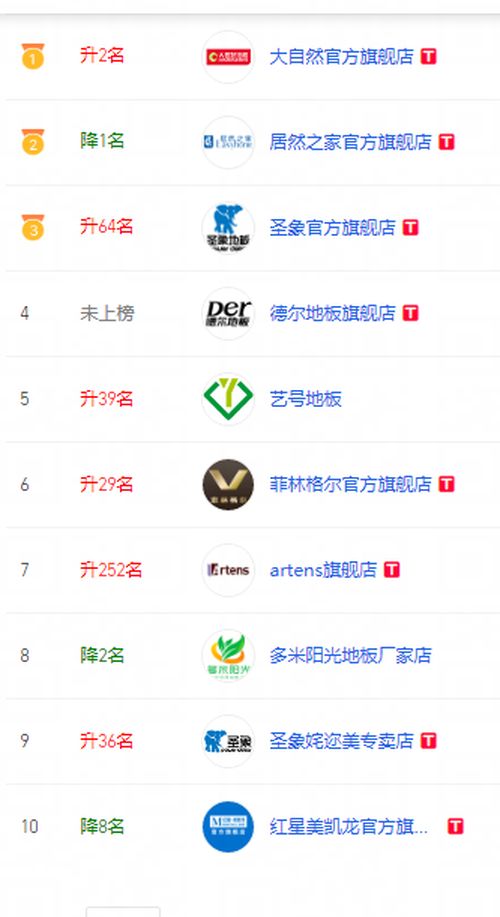 从天猫“生意参谋”后台看到的地板品类双11当天的成交数据来看,排名前十的不仅有大自然、圣象、天格、世友等品牌,也有居然之家、红星美凯龙等线下连锁巨头,更有御成地板等后起之秀。