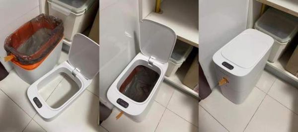 这个逸拉桶的功能应该是佳帮手的专利,我看店铺里好几款别的垃圾桶也是这样的打包方式。说实话非常好用很人性化,垃圾袋上沿儿有一圈抽绳,套垃圾袋的时候抽绳一端在卡槽处。打包的时候甚至桶盖都不需要打开,直接把抽绳一端一拉,里面的垃圾袋就自动封口了。完全不费力气不脏双手,也不用看到那些辣眼睛的东西。最近还在电梯里看到了他们的垃圾桶广告,虽然不是智能感应的这一款,但也具有打包不脏手的功能。