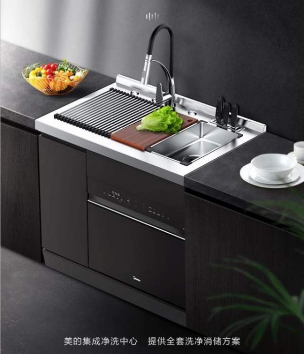 美的中式灭菌集成水槽洗碗机XQ02由多功能58L大容量水槽、10套嵌入式洗碗机、同时可选配净水器、垃圾处理器组合,为用户提供全套洗净消储方案,有效节省900mm的橱柜空间,让你在方寸之间也能为家人准备美味大餐。
