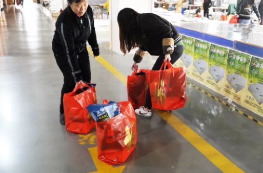 冬气虽然寒冷,但年礼分发现场热火朝天,各部门人员配合默契,维护秩序、搬运、核对,分发各司其责,一袋袋承载着公司关怀的福利礼物传递到员工手中,同时也代表集团领导向每一位员工及员工家属送去的真挚问候与春节祝福。