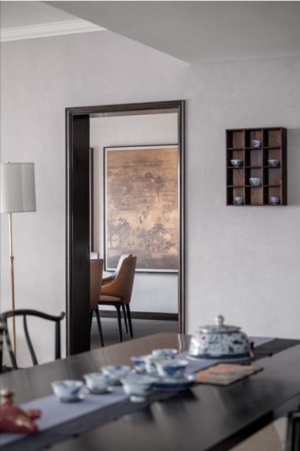 本案是主人与三两好友共同打造的一处吃饭、喝茶、闲聊人生百味的好去处,设计团队以东方美学为底蕴,结合西方装饰艺术,演绎出“以诗为伴、禅茶人生”的东方文人生活画卷,更有美食带来人间烟火气。