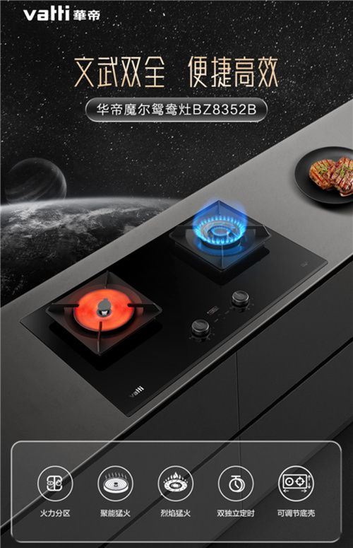 华帝鸳鸯灶BZ8352B,将好用好看好清洁的产品特质完美演绎。该产品采用左右分区设计,左边聚能猛火,爆炒鲜香更节能,右边烈焰猛火,满足煎炒蒸焖炖等烹饪要求,实现高效烹饪,满足全家口味。双炉头均可独立定时,精确把控各式菜品最佳用时,定时提醒,自动切断气源,蒸煮、煲汤放心看护。