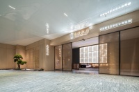 步入会客厅,体验馆的客厅是一个展示空间。我们用中国古建筑设计感很足的四方形造型顶部,让空间变得更加有立体感,拉升空间的视觉美学。客厅的真皮沙发与茶几采用中轴线设计,令空间具有庄严之形态,沉稳内敛毫不张扬,在低调中突显深厚文化底蕴。沙发前后也是中轴线设计,左边是中式风格茶室,右边是日式风格茶室。不同文化的碰撞却又演奏出一曲和谐之声,满足日常来自不同地域的贵客。
