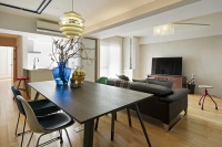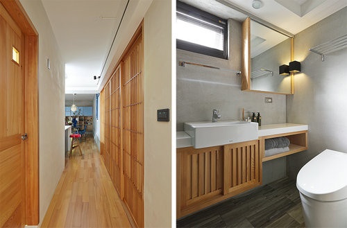屋龄30 年的老屋,在设计师安排下,让70平米的小空间在视觉上变得更宽广舒适。空间中的日本建筑语汇不难发现屋主对于日式空间的喜爱。起居空间中客厅与餐厅两道主视觉墙面以水泥粉光处理,而卧房等其他壁面则以珪藻土勾勒出纹理,让视觉上产生不同层次。