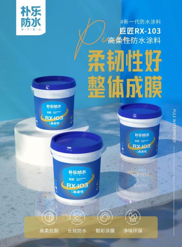 巨匠RX-103高柔性防水涂料具有耐水性好、柔韧性强、施工便捷等特点,适用于卫生间、厨房、阳台等部位的地面防水处理。
