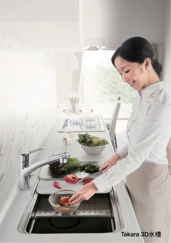 Takara standard的厨房系列,把收纳做到了极致,其中升降下拉篮,是Takara standard的专利产品,拉下来的高度正好满足手臂伸平的高度,取放东西不用踮脚。各种转角拉蓝,抽屉中收纳细节等等,其人性化的设计,令人折服。