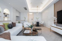 可以说,设计师的解决方案也非常简单,取“古典中的一个元素”——法式线条来削弱层高的压迫感,线条铺满全屋墙面保持了视觉的基础留白统一,在此基础上,做加法。