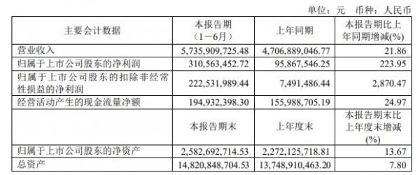 三棵树上半年营收57.36亿 净利润同比增长223.95%
