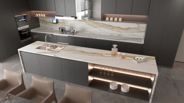 法萨石其精细肌理与亲肤表面,尽显现代设计美学之精髓,在确保功能和形式完美结合的同时,通过新工艺、新技术等石英应用方案,充分满足创意家居的需求,缔造出一个个独i一无二的烹饪空间。