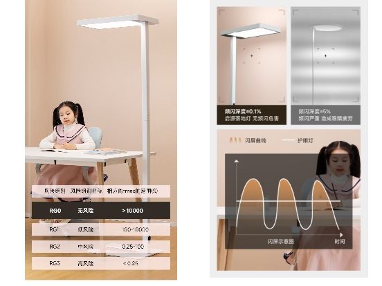 采用启源防频闪技术,输出稳定无频闪类太阳光,为长时间处于灯光下的孩子筑起一道无形的防护屏障,全天候呵护双眼,避免因闪烁引起的眼疲劳和降低视力损害。