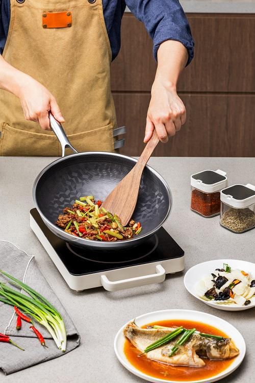 WBKᴺ3D旋风炒锅一样采用了独创3D FT技术立体旋风悬浮花纹和7层超导增热技术,能有效防止食物粘锅,确保食物的口感和营养价值在烹煮过程中得到最大限度的保留,不管是滑炒、煸炒、生炒还是爆炒,都能轻松拿捏。