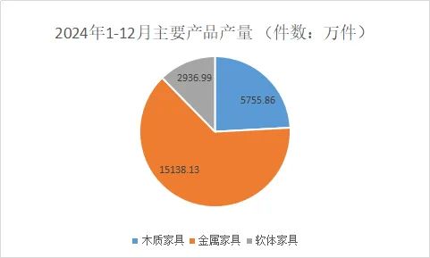金属家具1.51亿件,累计增长13.9%,12月单月完成产量1501.68万件,增长7.4%;