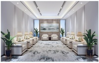 外立面以中式元素为主导,巧妙融合松鹤延年壁画、瓷雕壁画、中式柱花等外墙配件,营造出丰富的层次与韵律,同时也蕴含中国文化的博大深意,再加上芝麻白+深咖的简约配色,让建筑成为贺州家居市场的另一道风景。