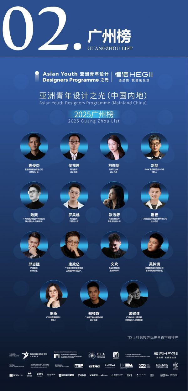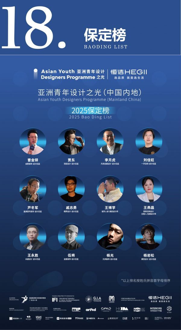 2025年“亚洲青年设计之光(中国内地)”从全国31座城市中,遴选出每座城市最具先锋性与影响力的青年设计代表。首期榜单聚焦11座城市——重庆、天津、宁波、佛山、贵阳、兰州、太原、呼和浩特、唐山、鄂尔多斯、中卫,共有147名优秀青年设计师脱颖而出,荣膺此项荣誉。作为助力设计生态成长的重要力量,恒洁携手“2025亚洲青年设计之光”,见证青年设计力量璀璨绽放,链接全国设计资源,激发灵感交融与专业共进,推动行业协同发展与创新升级!