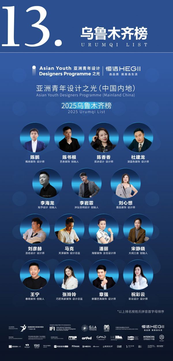 祝贺以上荣登第二期“亚洲青年设计之光(中国内地)·2025城市榜”的优秀设计者!入围者将有机会争夺全国TOP100榜的荣誉,让我们共同期待这些城市设计新力量在全国舞台上续写精彩!