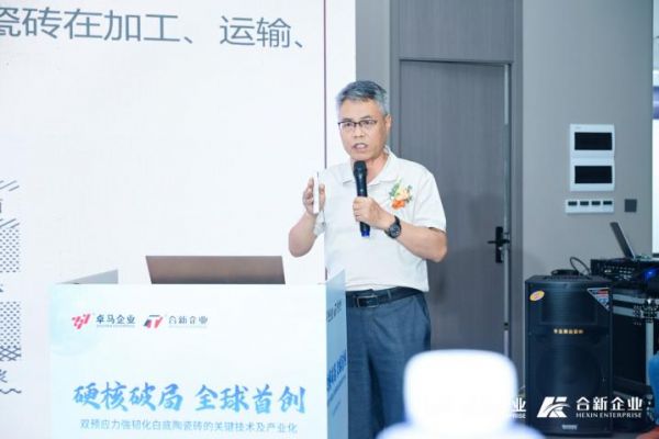 卓马集团总经理冼伟潮代表企业致词。他分享道,卓马深耕陶瓷领域多年,始终以“技术攻坚”为核心竞争力,此次双预应力强韧化技术的突破,是企业“以创新破局”的生动实践——从技术构思到落地攻坚,卓马始终以民族陶瓷企业的担当,为行业树立“技术驱动发展”的标杆。