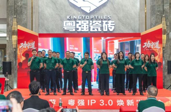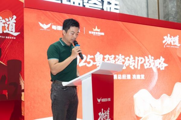 发布会以一曲雄浑有力的粤强之歌《瓷砖一代宗师》大合唱开场,瞬间点燃现场气氛 。集团营销总经理冼建堂先生首先致欢迎辞,阐述了品牌初心与本次IP合作的战略意义 。随后,粤强品牌总经理谢访林先生登台,深度分享了粤强的“功守道”战略:以开拓市场为“功”,以坚守品质与文化为“守”,功守合一,方成品牌长远发展的“道”。