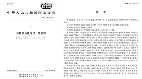 中国陶瓷行业迎来历史性时刻!GB/T 45817-2025《消费品质量分级 陶瓷砖》国家标准将于2025年12月1日正式实施,该标准首次建立行业分级体系,将产品分为AAAAA(5A)、AAAA(4A)、AAA(3A)三个等级。这场行业的质量"大考",为优秀企业提供了展示实力的舞台。