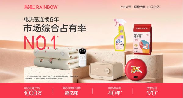 彩虹,以不断追求卓越和多年累积的实力为品牌赋能,历经40余年发展历史,从一床简单的电热毯发展到现在全方位取暖产品,坚持不易。近年来,彩虹不断突破创新,让产品紧跟时代潮流,更加贴近用户的实际生活场景,不断翻新对传统企业的固化形象。从第一代机械式电热毯的基础温暖1.0,到电子多档调节的恒温控温2.0,彩虹始终紧跟中国家庭取暖需求的变迁。如今,彩虹“温暖3.0”应时而生,以智能科技推动电热毯迈入“感知温暖”的新时代。