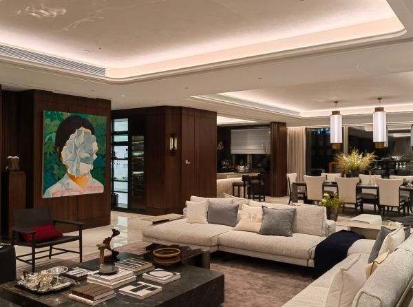 此般对话感,由外至内,自然蔓延。步入室内,空间设计秉持对“自然感”的追求与对简素生活本真的回归。柏厨家居参与打造的护墙板,呈现出原生般的“原木”视感,木饰面连贯的色彩与形态,为空间赋予了承载艺术的无限想象。这里的设计,并非效仿历史之形,而是以当代精神的理性笔触,自然生长出能够跨越时间的生活质感。