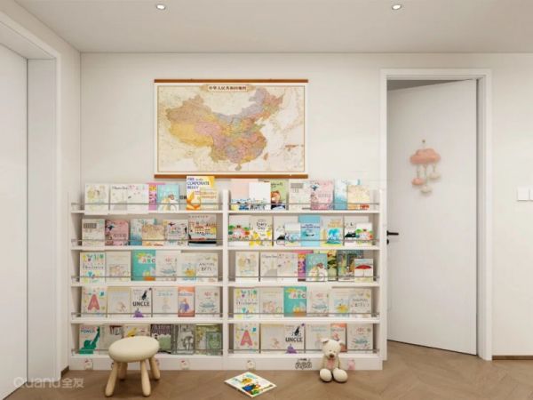 将柜子设计在孩子触手可及的高度,让每本书都有专属位,从小养成物归原处的好习惯。