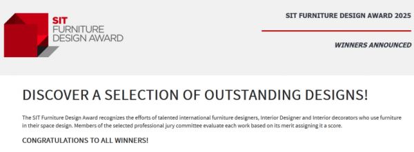 瑞士SIT家具设计奖(SIT Furniture Design Award)旨在表彰和分享家具设计师的杰出作品以及创新运用家具的项目。具有创造力、创新视野和便利性强的家具设计值得在世界范围内得到广泛赞赏和分享。SIT家具设计奖致力于认可、表彰和推广国际上优秀的家具设计师、品牌、制造商、新锐人才以及以创新提升我们日常生活品质的远见者,聚焦那些呈现战略思维和想象力的佳作。瑞士SIT 家具设计奖(SIT Furniture Design Award)与美国LIT 照明设计奖 (LIT)、美国国际设计大奖 (IDA) 和欧洲产品设计奖 (ePDA) 齐名,专注于产品美学、概念和优化,已成为当今最知名的设计大奖之一。