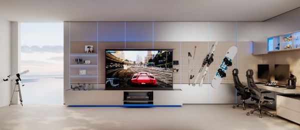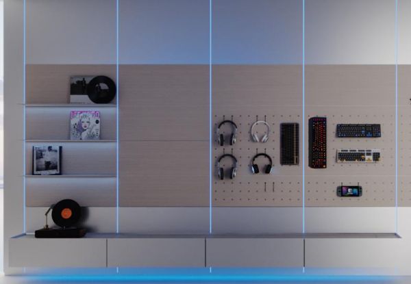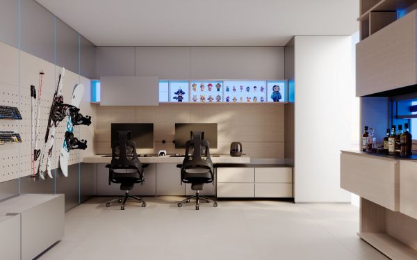 这间多功能房不只是一个空间,更是通过色、声、光、电、柜的联动,构建的沉浸结界智慧空间,实现热血竞技场、沉浸叙事场、信仰收藏馆、闲适的水吧、专注的办公区五大智慧场景在同一空间内自由折叠。这已不是遥不可及的未来幻想,而是基于热爱精心构筑的“时空入口”,让年轻灵魂与炽热激情在此获得妥帖安放。