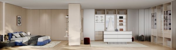 卧室衣帽间则通过“双生空间”理念,实现从温馨安睡到潮酷穿搭的无缝转换。