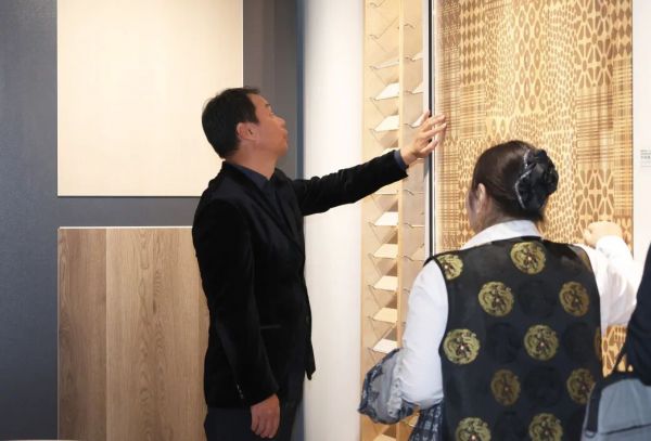 新明珠集团副总经理、新明珠绿材执行董事李莹(左) 介绍产品