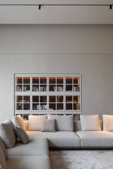 起居区陈设Vincent Van Duysen设计的圆形Augusto沙发及款式多样的Aster与Fonte系列圆形咖啡桌,与Molteni&C Heritage系列中Gio Ponti设计的Continuum D.163.7扶手椅形成巧妙对话。