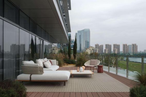 露台空间倾心演绎Molteni&C室外系列:Yabu Pushelberg设计的Sway沙发以两道柔美弧线尽显百搭灵动形态;细腻环抱式Petalo扶手椅与Picea咖啡桌默契相映,搭配系列主打Fairmount木桌。这些由Vincent Van Duysen打造的匠心之作共同营造出精雅不凡的整体氛围。
