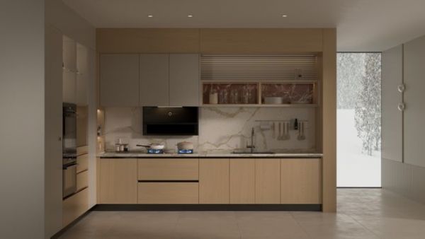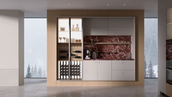 该厨房系列采用地柜、吊柜结合立柜的方式,充分扩大厨房的储物功能。L型橱柜灵活应对多种空间形态,并在开放空间中起到一定的围和作用。经典配色,低调耐看,肌理质感搭配木质纹理,丰富有质感。产品植入大量的五金和功能性配件,增加收纳功能的多样化。