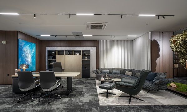 该中心绝非传统意义上的产品展厅,而是一个融合了“全场景展示、共享办公、服务共享、文化体验与交流”的生态协作创新实验室。它精准切入大湾区这一中国经济活力最强、创新浓度最高的区域,通过呈现科技办公、医养空间、教育空间等真实场景,为不同行业客户提供量身定制的解决方案。更为关键的是,圣奥在此推出了极具行业颠覆性的“五免一减”政策,实质上是将自身积累的品牌、设计、供应链等核心资源向合作伙伴开放共享。