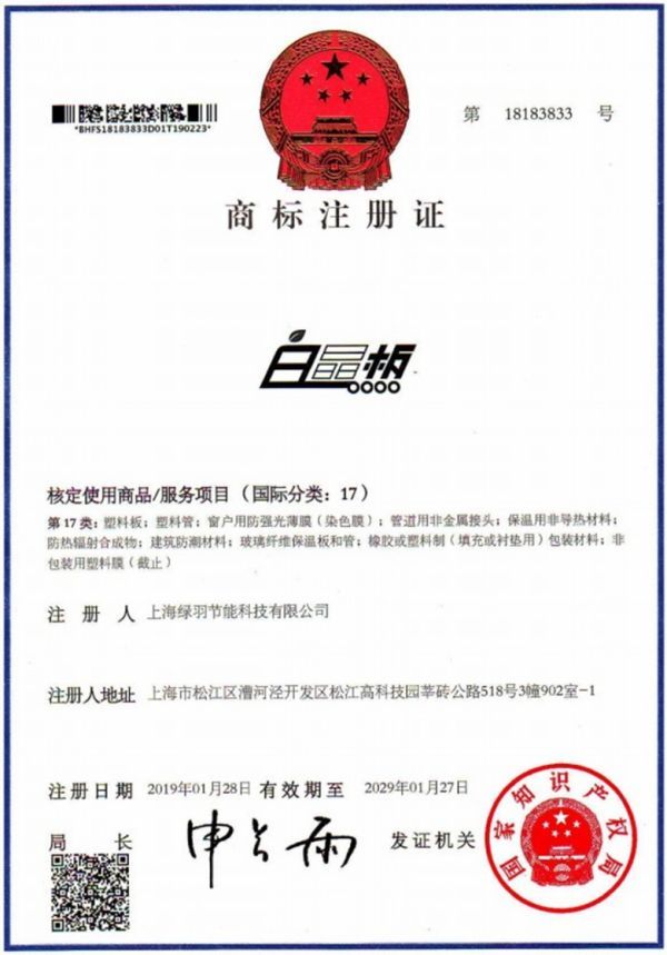 商标侵权:需特别强调的是,“白晶板”并非行业通用产品名称,而是上海绿羽节能科技有限公司持有的注册商标。任何未经授权在产品名称或宣传中直接使用“白晶板”字样的行为,均可能构成侵权。