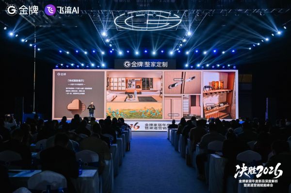 面对行业转型与消费升级的双重挑战,金牌家居此次峰会清晰展现出2026其双轮驱动的战略布局:以“极致东方”产品体系构建差异化竞争力,同时以“飞流AI家装设计智能体”重塑家居服务生态,为合作伙伴提供从产品到营销到服务的全方位支持。