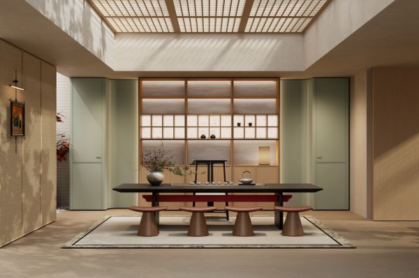 “木隐”系列:千年美学的当代心境疗愈。直指高压社会下的集体情绪焦虑,该系列深度转译宋式美学“雅、静、简”的哲学内核。通过秘瓷青的釉色、触感温润的材质以及香芬板营造的嗅觉意境,它构建了一个可让身心安顿的“精神容器”,其价值在于提供情绪疗愈与心灵栖居。