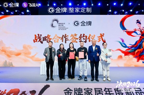从文化借力到美学共建,金牌家居与敦煌当代美术馆的合作,是战略纵深的点睛之笔。它超越了产品联名的浅层逻辑,进入了“文化转译”的深层合作。金牌借此引入顶级的学术与艺术资源,旨在为产品注入更权威的美学叙事和更深厚的文化附加值,推动品牌向“东方美学当代转译者”的身份升维。