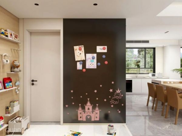 如果觉得大白墙太单调,不妨把过道墙面改造为磁吸黑板墙。