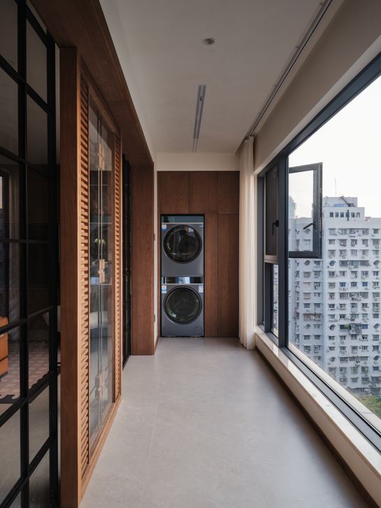 生活阳台则通过玻璃隔断明确边界,在家政与日常之间取得平衡。它不被隐藏,也不被强调,只是安静地承担起生活所需。