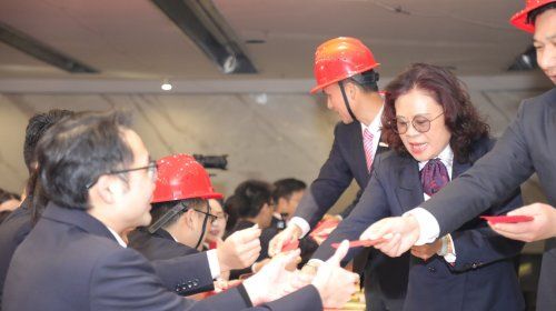 随后,蒙娜丽莎集团高层领导团队及现场与会人员合影留念,并将象征着新总部的吉庆、发展顺遂的心意红包派给在场的每一位成员,共同分享这份喜悦和荣耀,齐贺QD瓷砖新总部装修项目正式动工,QD瓷砖发展历程又掀开了崭新的一页。