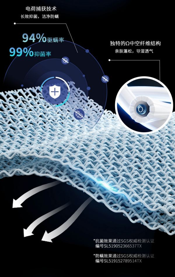 当代人常受螨虫叮咬瘙痒、细菌诱发皮肤敏感、熬夜闷热黏腻等睡眠困扰,穗宝床垫针对微生物侵扰睡眠环境的核心痛点,深睡之境-尊享版床垫甄选DACRON FRESH系列抗菌防螨纤维,其搭载独特电荷捕获技术,可实现双重主动防护。一方面持续主动吸附并抑制细菌繁殖,从源头切断细菌滋生路径;另一方面强力阻隔螨虫渗透,杜绝螨虫叮咬与排泄物引发的肌肤不适,真正从根源上杜绝微生物对睡眠环境的侵扰。