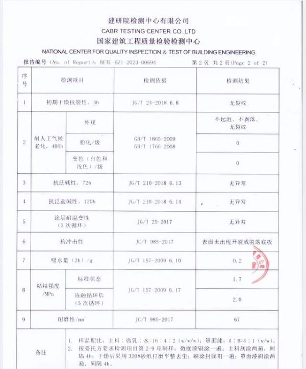 检测报告:物理性能、环保指标、耐火等级检测报告