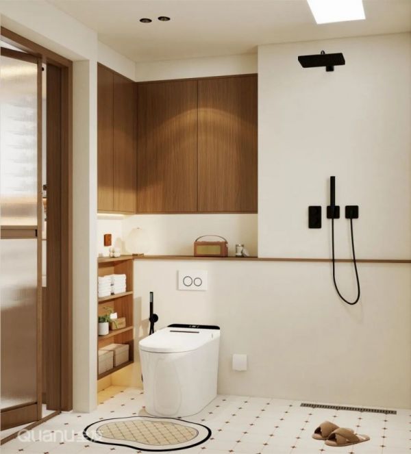 洗澡时地面湿滑,堆放在墙角的瓶瓶罐罐很容易造成安全隐患。其实,解决办法很简单:在卫生间墙面留出壁龛,把洗浴用品放入其中,既防止了安全隐患,又方便淋浴时取用。